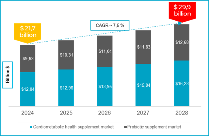 In addition, the global consumer market for preventive cardiometabolic health supplements is estimated to reach over $16 billion towards 2028 (Source: Precedence Research)